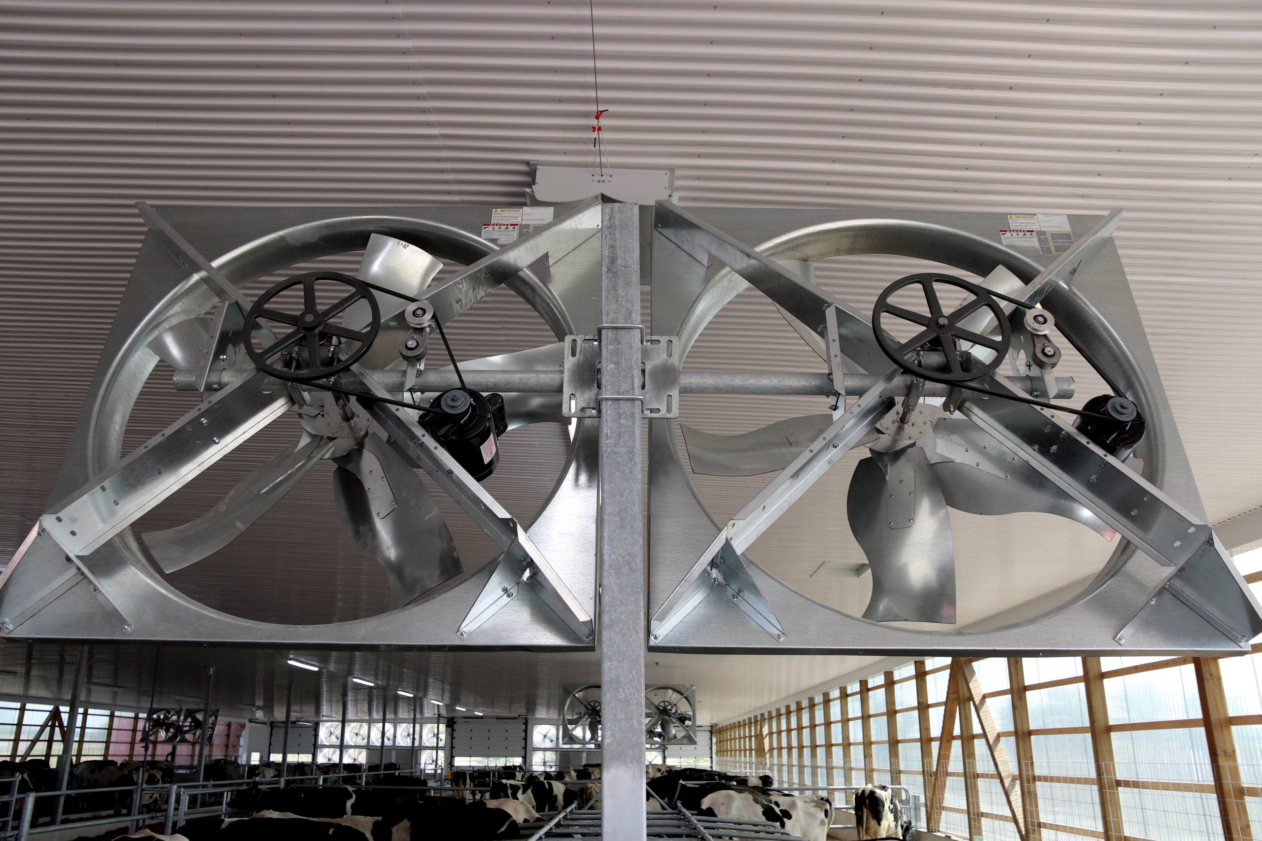 The DLS X-Brace panel fan is 54” with 5 blades. It is designed to work well in free stall areas and areas that need extra airflow. This fan features an energy-efficient enclosed motor and is super quiet! All the components are made in North America, and DLS offers a 5-year bearing and shaft warranty.
