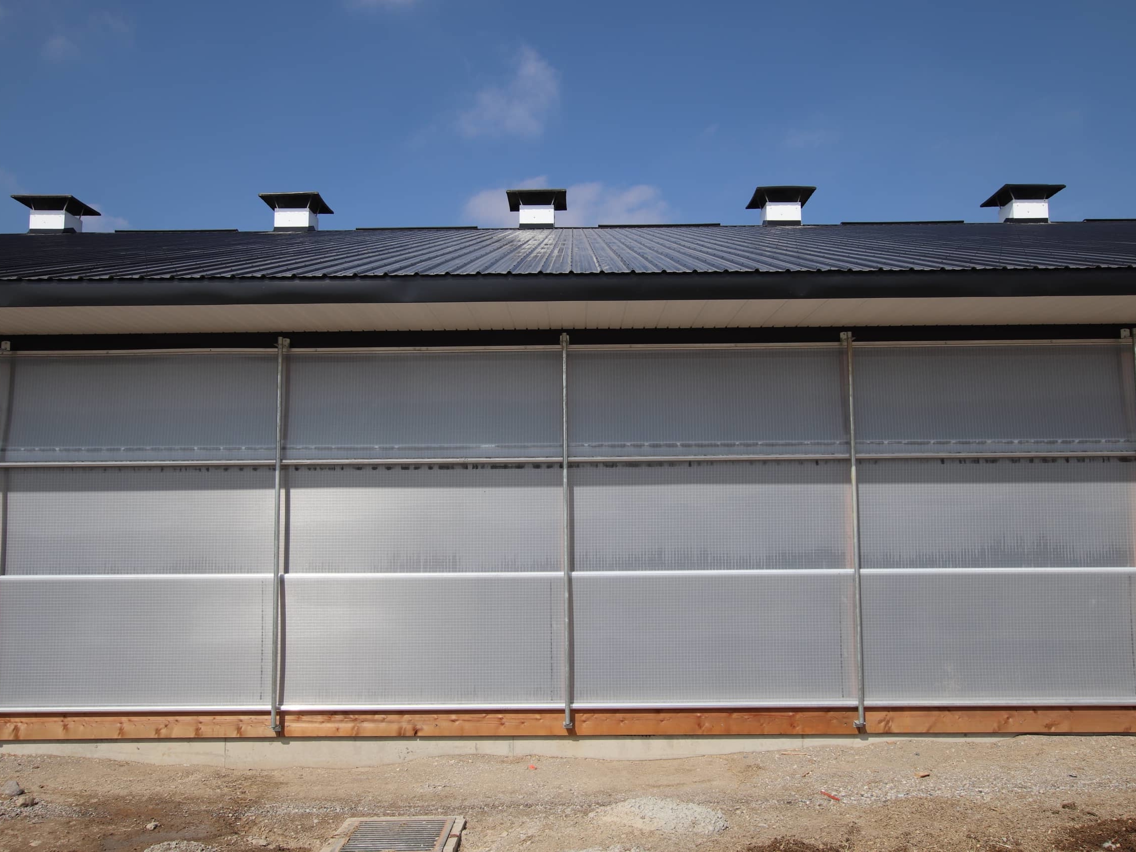The barn addition at View Hill Holsteins is progressing well with the pack area all set up with cows and the rest of the barn stabling in progress. On the exterior, DLS curtains are installed.