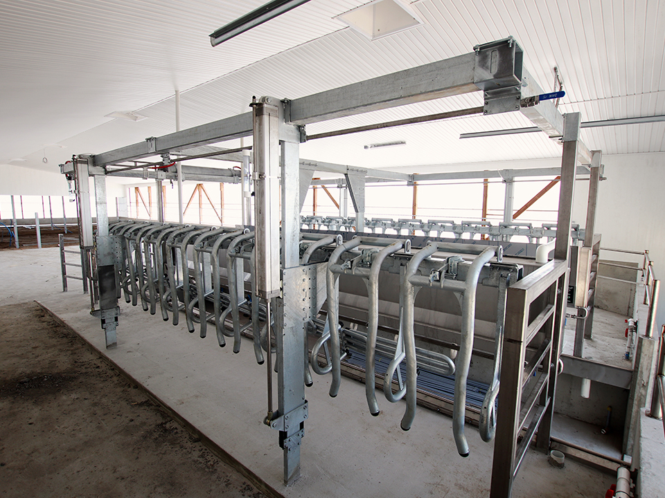 From 2002, they had a GEA Mag 90 parlour with the posts at each stall. They were seeing some wear and tear on the sequence gates, and over the years, their cows got bigger, and they needed more room within the parlour stall. The main concern was, on occasions, a cow would fall in between the posts making it challenging to get her out. They wanted a safer solution for their cows.