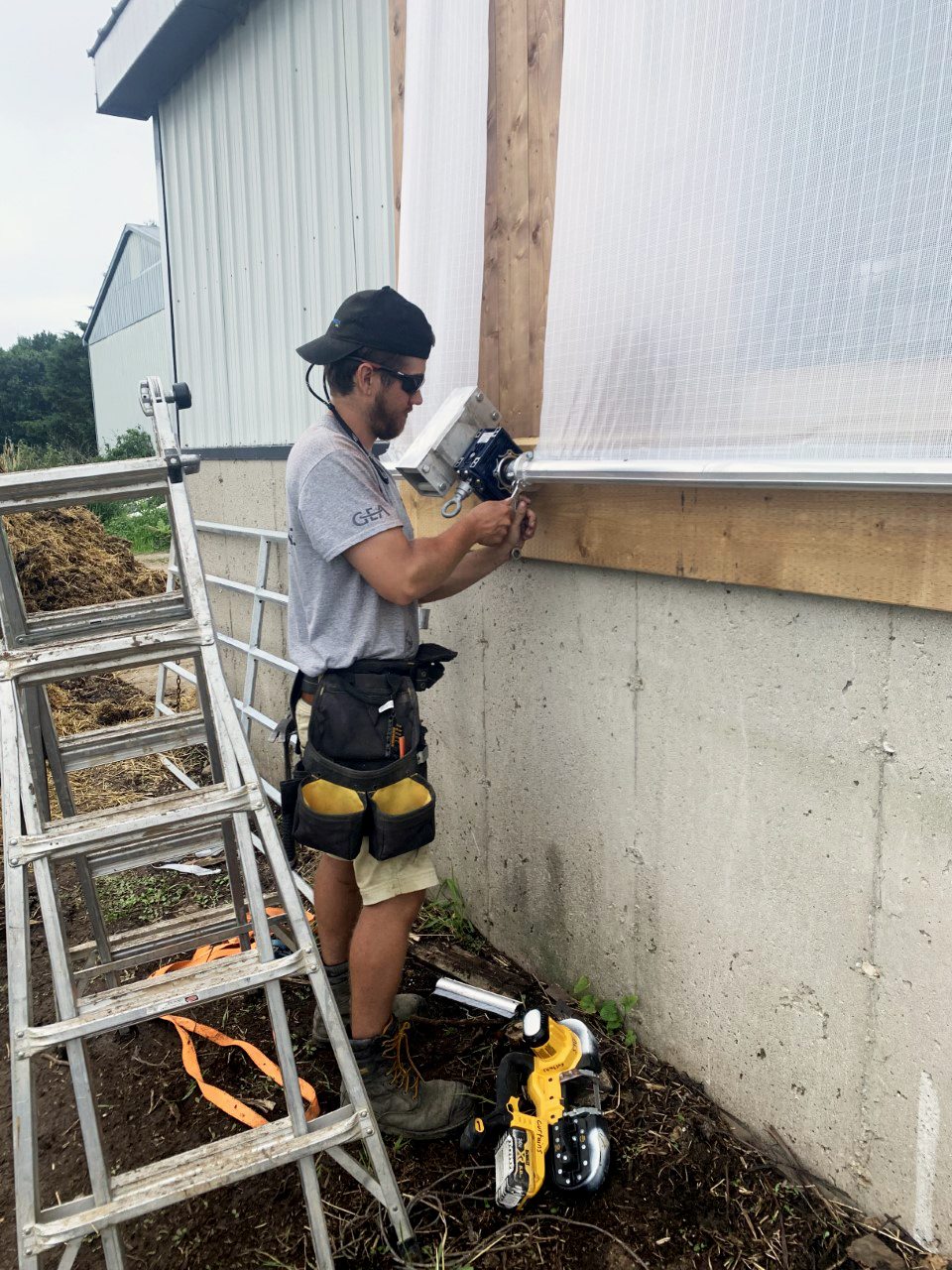 Jordan has been with us for a year and a half. He started on the DLS Structures team, and this past year he transitioned to the ventilation side of the business, primarily installing DLS curtains.