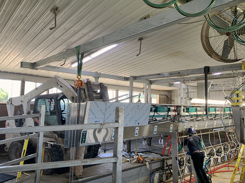With the purchase of the second farm, some decisions needed to be made on the home farm; they were milking 200 cows, and the purchase would add another 85 to the home farm until the new robot barn was completed. The free stall addition in 2017 provided them with enough room to house the additional cows, but they needed to perform some updates to the milking parlour to make for a smoother milking process with the extra cows.