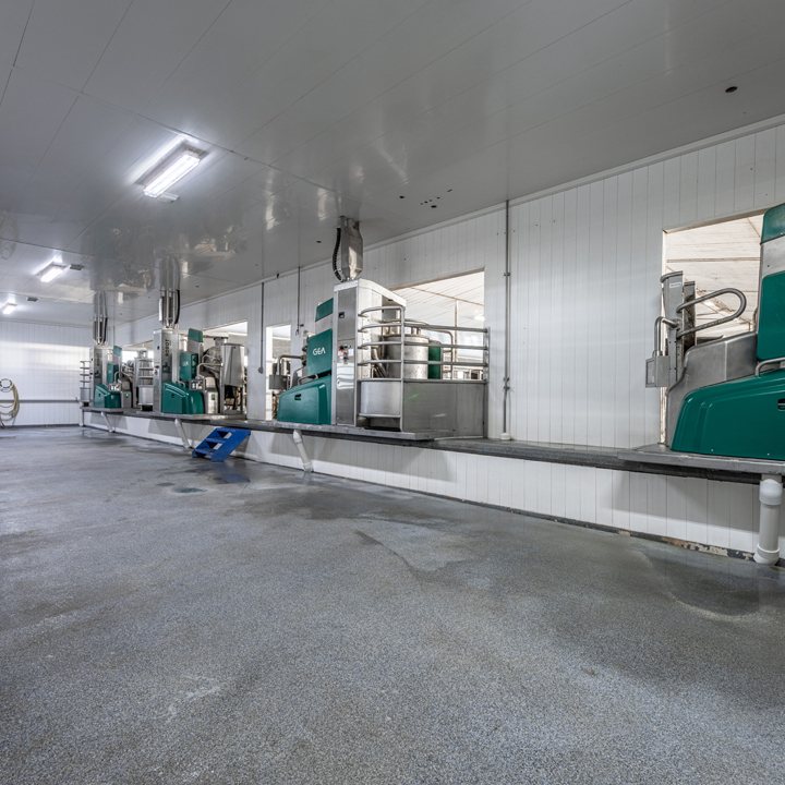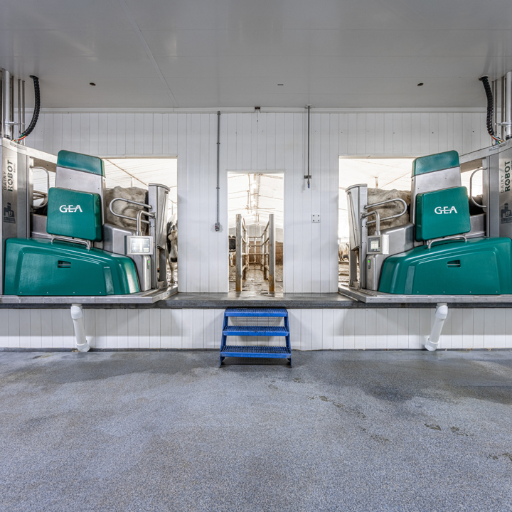 An upcoming GEA R9500 milking robot barn (4 robots) complete with Jourdain stabling, DLS ventilation, Daritech manure pumps and the Maximus controller.