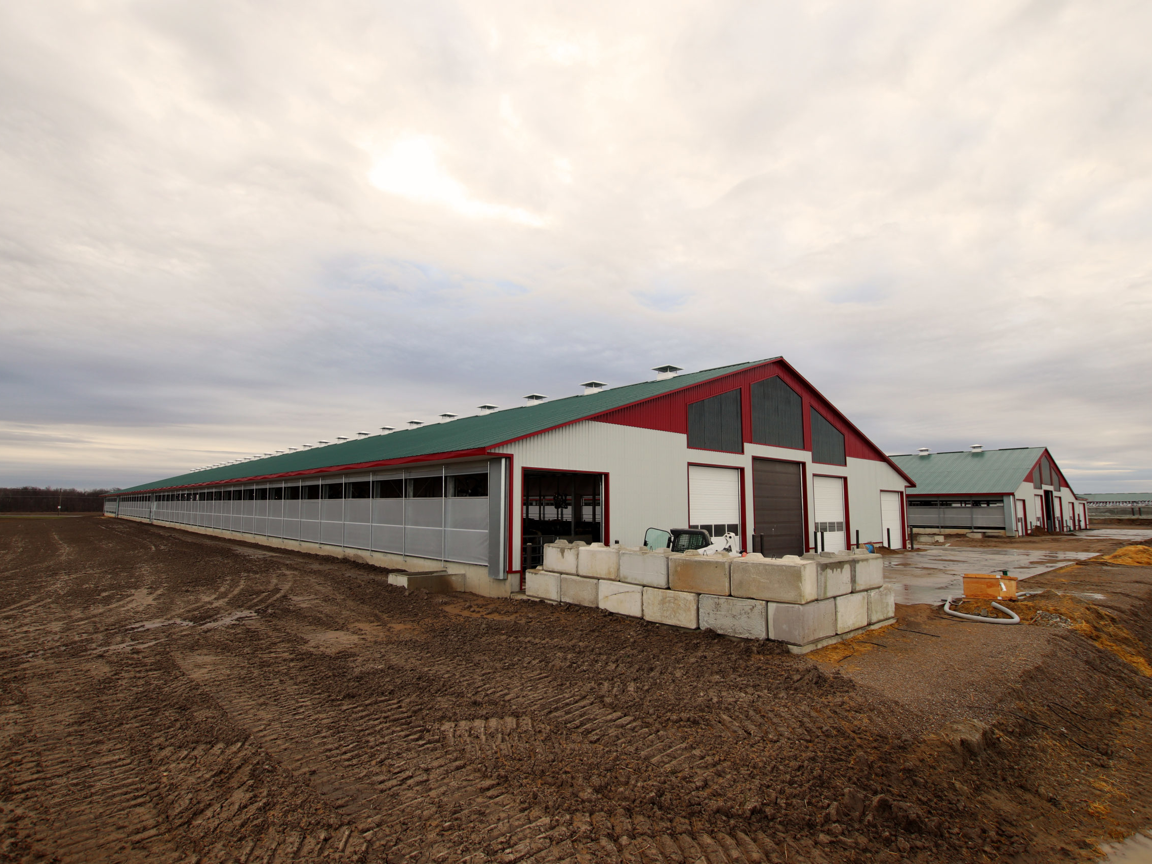 The barn addition at View Hill Holsteins is progressing well with the pack area all set up with cows and the rest of the barn stabling in progress. On the exterior, DLS curtains are installed.