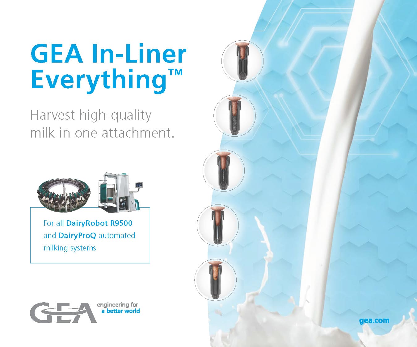 The GEA DairyProQ robotic rotary is a game-changer in the dairy industry! With the GEA DairyProQ, each step in the milking process is performed robotically on a rotary with one person supervising the entire process. This robotic rotary also includes the intermediate disinfection of the teat cups and their external components between cow milkings. Each stall is modular and is removable for maintenance purposes. This feature helps eliminate any potential downtime as the rotary can still function while technicians work on the stall removed from the rotary. GEA recommends having a stand by unit on the farm for such occasions. The DairyProQ is available in full sizes ranging from 28 to 80 milking stalls, and they offer an economical half load option with 14 stalls.